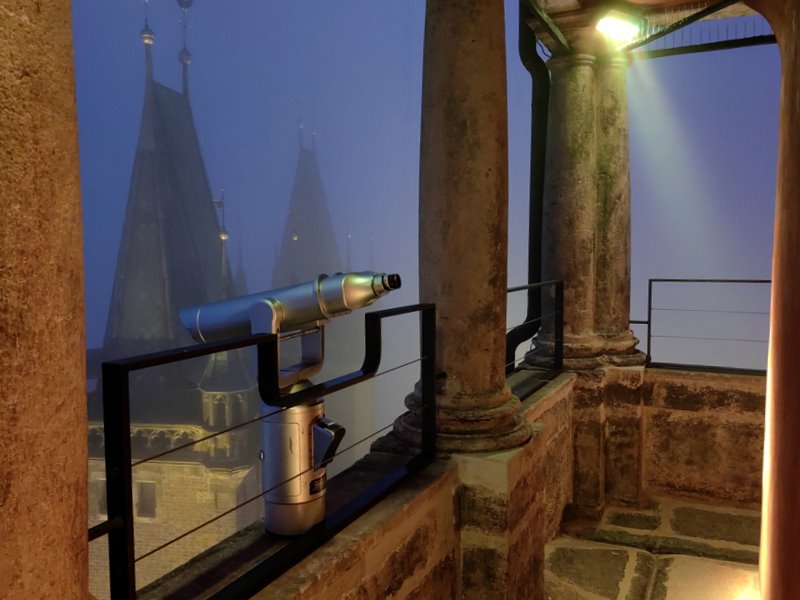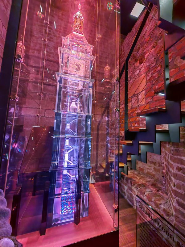 Podczas wspinaczki na galerię Białej Wieży można zobaczyć między innymi unikalny szklany model wieży, ponad 500-letni dzwon Augustyn oraz oryginalny mechanizm zegarowy zbudowany przez Josefa Božka w 1829 roku. W Czechach większy od niego jest jedynie dzwon dzwon Zygmunt w katedrze św. Wita w Pradze.