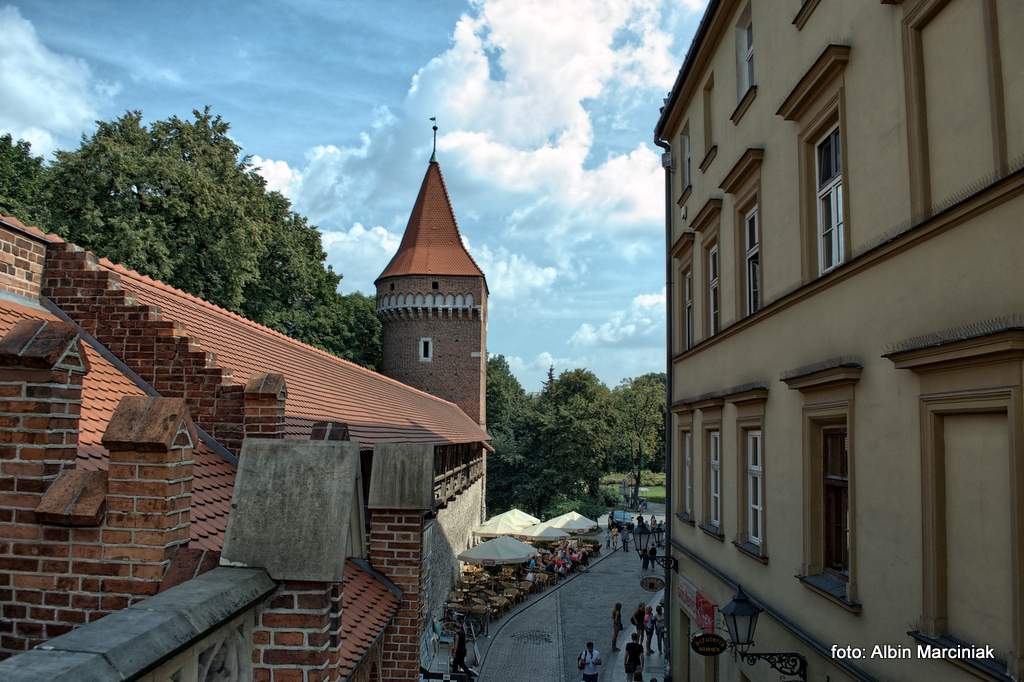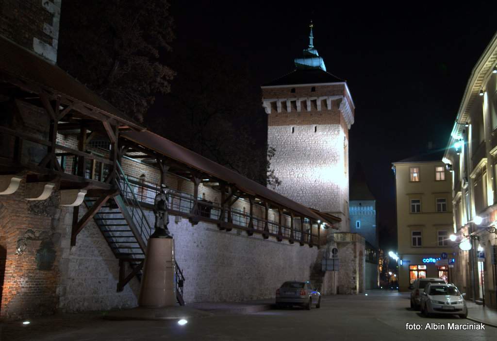 W XIII i XIV wieku Kraków otoczono murem. Brama Floriańska, o której źródła pisane wspominają od 1307 roku, była jedną z bram w murach obronnych. Przez bramę biegł trakt do Kleparza koło Kościoła św. Floriana; tutaj też zaczynała się Droga Królewska na Wawel.