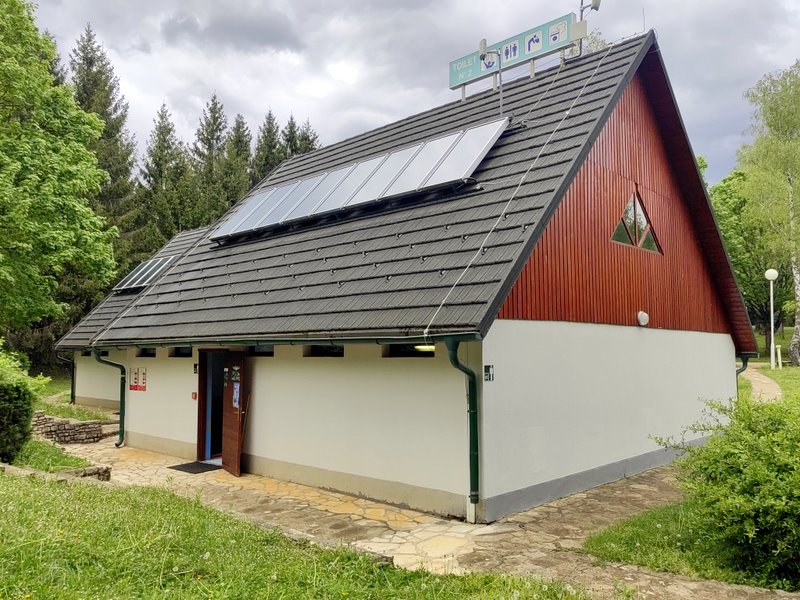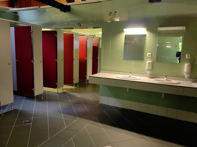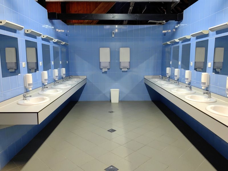 Węzły sanitarne usytuowane są w kilku strefach kempingu. W częściach „damskich” do dyspozycji są pralki automatyczne.