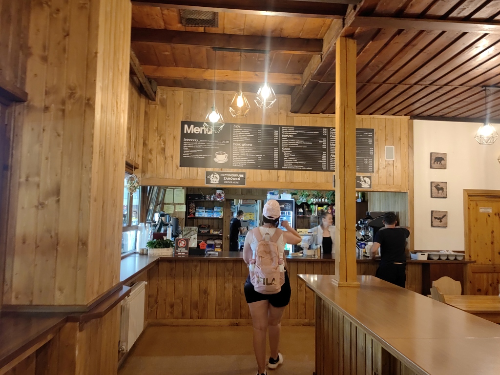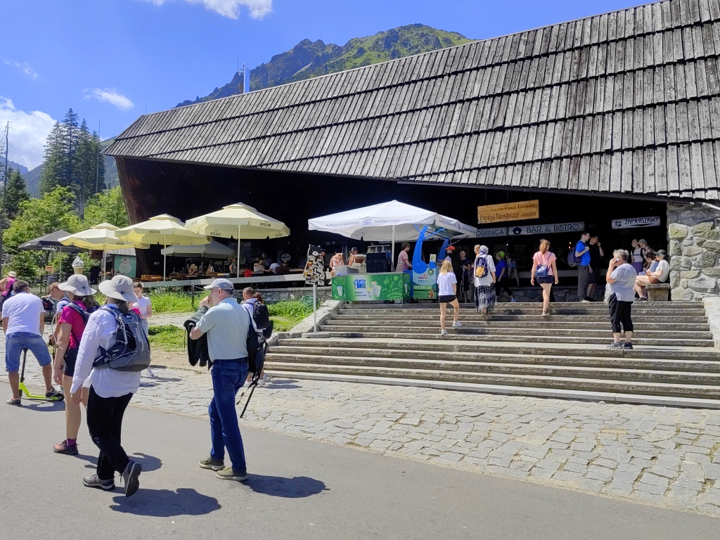 Jak na tak duży parking oraz najpopularniejszy punkt wejścia na szlaki, baza gastronomiczna jest tutaj daleka od zadowalającej. Od strony parkingu jest kiosk z pamiątkami a dopiero po wejściu do środka, możemy przekonać się że jest także mała gablota z napojami. Kolejna buda z fast foodem i napojami znajduje się tuż przy szlaku, ale już po wejściu na teren TPN. Brakuje zadaszonego punktu z ciepłymi napojami i posiłkami. Pomijając że osoby korzystające z komunikacji zbiorowej, po zejściu ze szlaku nie mają gdzie poczekać. Problem staje się znacznie większy przy załamaniu pogody.