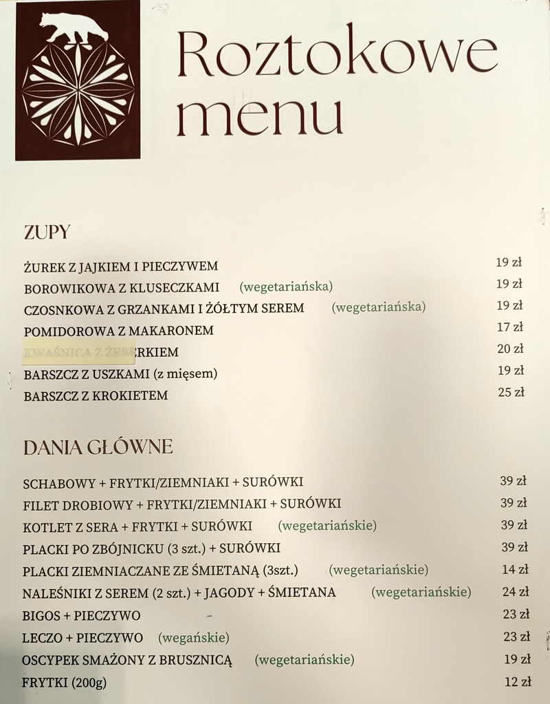Ceny w Schronisku PTTK w Dolinie Roztoki
