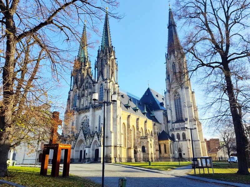 Charakterystyczna południowa wieża, wysokości 100,65 m, jest obecnie drugą pod względem wysokości wieżą kościelną w Czechach, a najwyższą wieżą neogotycką. W katedrze znajduje się również największy dzwon na Morawach.