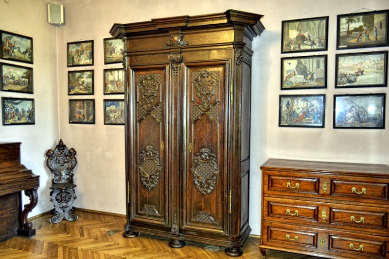Większość widocznego na ekspozycji umeblowania pochodzi z dawnego pałacu hrabiego Xawerego Pusłowskiego przy ul. Westerplatte i jest depozytem Muzeum UJ. Obrazy wiszące na ścianach w większości są własnością TPSP.