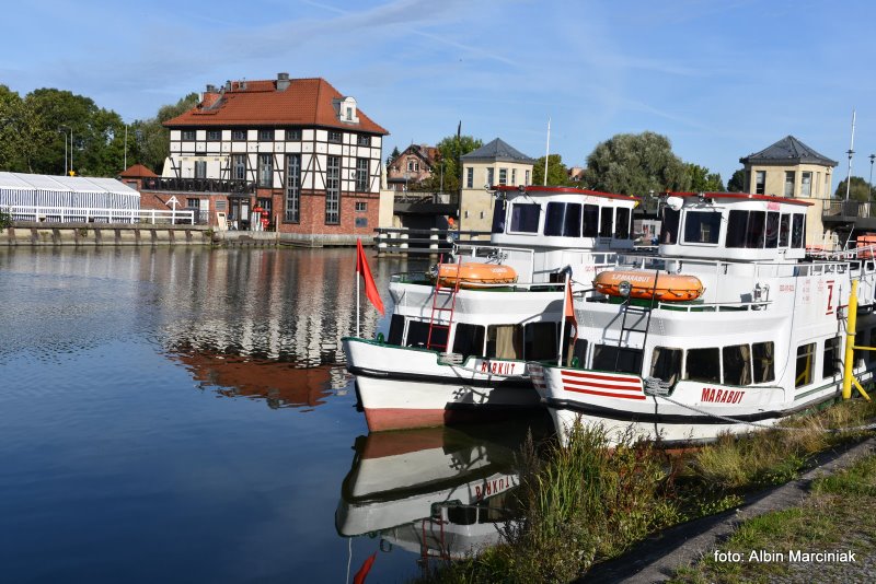 Tuż przy moście zwodzonym cumują statki wycieczkowe pokonujące słynne pochylnie. Biuro i sprzedaż biletów znajduje się w budynku na wprost statków.
