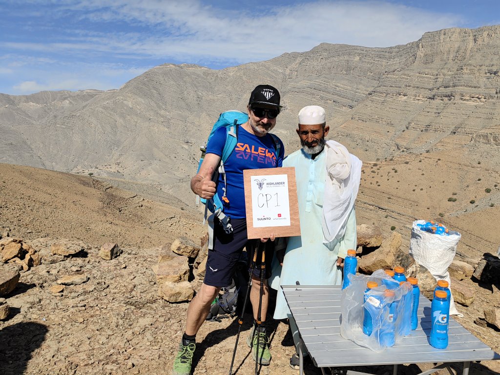 Skoro ruszałem z najwyższego punktu na całej trasie, wydawało mi się że dzisiejszy szlak prowadzi tylko w dół. Miałem rację, wydawało mi się ale o tym przekonałem się w w trakcie dnia. Nie powiem, początek marszu był bardzo przyjemny bo schodząc góry szlak prowadził grzbietem masywu a to pozwalało podziwiać zarówno potężny masyw górski z częścią Omanu po lewej, jaki i Zatokę Perską po prawej. Mijałem także miejsce które już znałem sprzed kilku dni oraz sprzed roku, gdzie miałem przyjemność zjechać na najdłuższej tyrolce na świecie (dwukrotnie) zjechałem nowo wybudowanym torem saneczkowym Jais Sledder oraz zjadłem pyszny obiad w najwyżej położonej restauracji w ZEA, 1484 by Puro która działa od niespełna roku. To było a teraz mijałem te miejsca ze świadomością, że zamiast zjazdów ma marsz a zamiast wykwintnego obiadu mam czystą wodę i batony energetyczne. No cóż, sam chciałem. Kilka zdjęć, spojrzenie na miejsce tętniące życiem i ruszam dalej. Po drodze zdobyłem kolejny szczyt, przygotowany dla lokalsów niczym nasz Kasprowy. Kilkaset metrów poniżej była oczywiście restauracja a nieco dalej na murku kilka butli z wodą. Zdziwiło mnie to nieco, bo woda ustawiona była ewidentnie pod uczestników Highlandera czyli naszej imprezy. Niezbyt zainteresowany przeszedłem obok, nieświadomy swojego błędu.