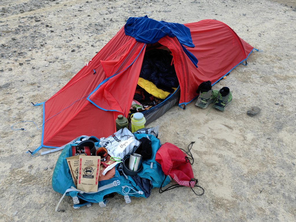 Cóż było począć. Zacząłem mozolne kompletowanie sprzętu i odzieży, gdzie podstawowym kryterium była waga i funkcjonalność. Waga to oczywiście podstawa bo wszystko co potrzebne na trzy dni wędrówki i dwa biwaki, należało spakować do plecaka i nieść przez całą trasę. Mowa oczywiście o namiocie i wszystkim co jest potrzebne do nocowania a także do jedzenia no i woda… a gdy zaczniesz nosić własną wodę, poznasz wartość każdej kropli.