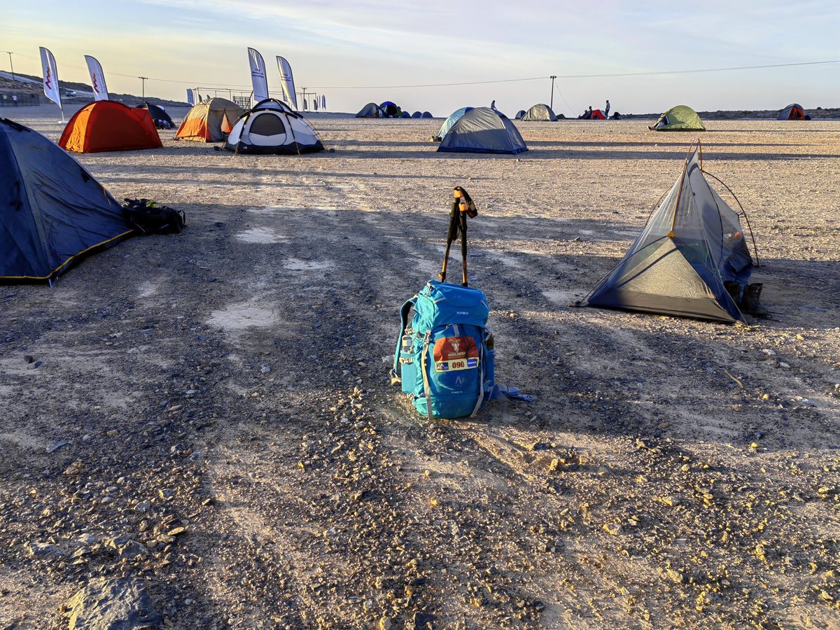 Nie, nie wystarczyła karimata i jakieś buty. Klimat jest trudny bo w dzień upał przekraczający 30 stopni i brak jakiegokolwiek cienia a w nocy chłodno, gdzie śpiwór puchowy był nieodzowny. Poranek także był bardzo rześki a wraz z pojawieniem się słońca temperatura wzrastała gwałtownie. Niby zaledwie trzy dni a jednak plecak 45 l wypakowany był po brzegi. No i woda… minimum wymagane przez organizatora to 5 litrów z początku wydawało mi się przesadą ale po dotarciu do pierwszego punktu kontrolnego przekonałem się dlaczego.