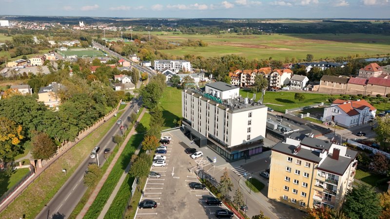 Położony przy ul. Rządowej 1a, w samym sercu Łomży, hotel jest oddalony jedynie o kilka minut spacerem od Starego Rynku i historycznej katedry. Dysponuje 78 pokojami w trzech standardach – business, standard, ekonomicznej, które spełniają oczekiwania zarówno gości indywidualnych, jak i grup. Pokoje klasy business, po kapitalnym remoncie, wyposażono w klimatyzację i nowoczesne udogodnienia.