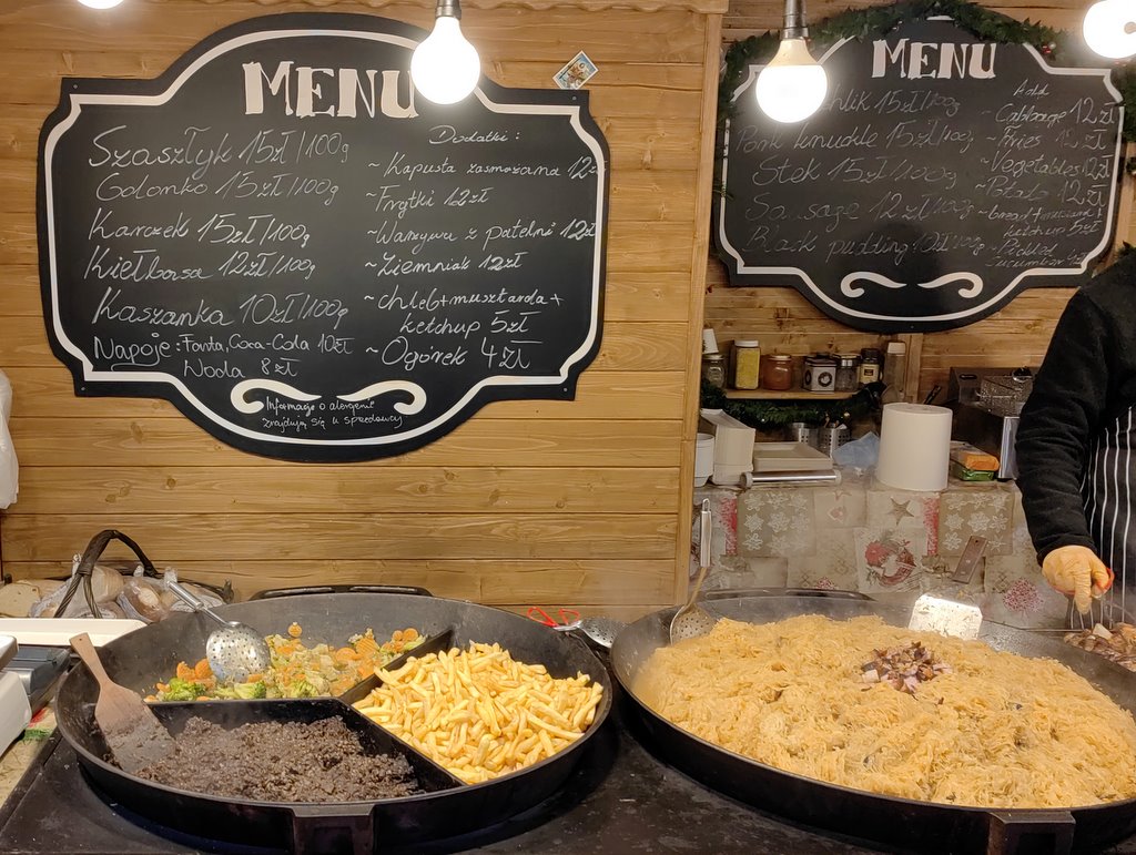 Niestety także i tutaj zauważyłem ceny które nieco studzą zapędy by skosztować wszystkiego. Kilka przykładów: pajda chleba ze smalcem 18 zł ale już pajda „full wypas” 35 zł. Naleśniki od 17 do 35 zł. Na stoisku Ukraińskim – Pelmieni 28 zł za 6 szt czy pierogi z mięsem 28 zł za 7 szt a barszcz do pierogów 20 zł. Nieco taniej jest w tradycyjnej Pierogarni gdzie porcję dostaniemy od 22 do 25 zł a barszcz czysty za 9 zł.