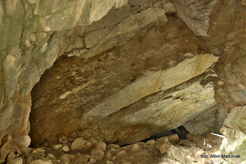 Główny wejściowy otwór ma średnicę ok. 3 m. Prowadzi od niego zejście pionowym 4-metrowym progiem po stalowej drabinie do głównej komory. Jest to to pojedyncza, duża sala o wysokości 10-15 m i rozmiarach 10 × 40 m. W jej stropie znajdują się otwory dwóch małych studzienek. Od sali prowadzi kilka bocznych, zakończonych ślepo korytarzy. Po lewej stronie od wejścia 20 metrowy, opadający w dół korytarz prowadzi do ciasnej szczeliny, którą można się przecisnąć do następnej mniejszej sali, a z niej z kolei do innego szerszego korytarza, w którym znajduje się mała kapliczka.