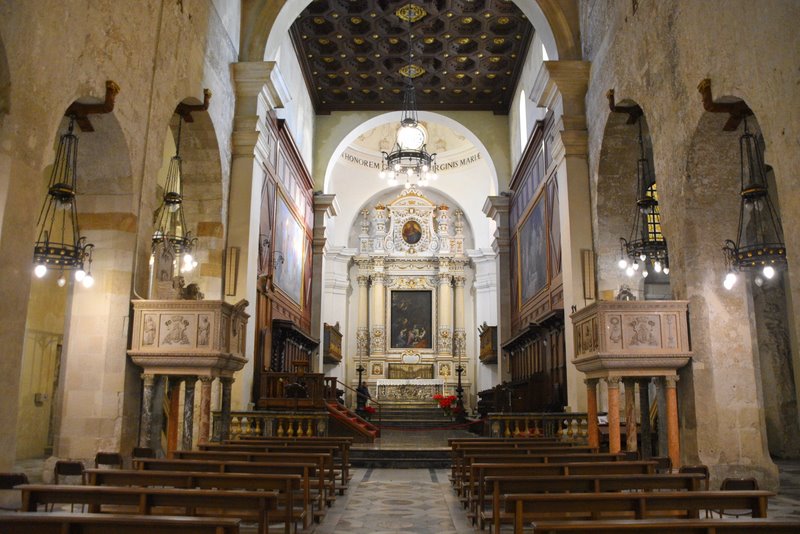 Zwiedzanie: Katedra zachwyca bogatym wnętrzem w stylu barokowym, a także elementami starożytnej świątyni Ateny. Z pewnością warto zwrócić uwagę na kolumny z marmuru, które są pozostałością po antycznej budowli, oraz na rzeźby św. Łucji, patronki miasta, umieszczoną na fasadzie. Niezwykłym punktem jest również pergola – filar, który pochodzi jeszcze z czasów greckich, stanowiąc ślad po starożytnej świątyni.