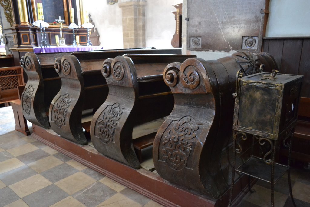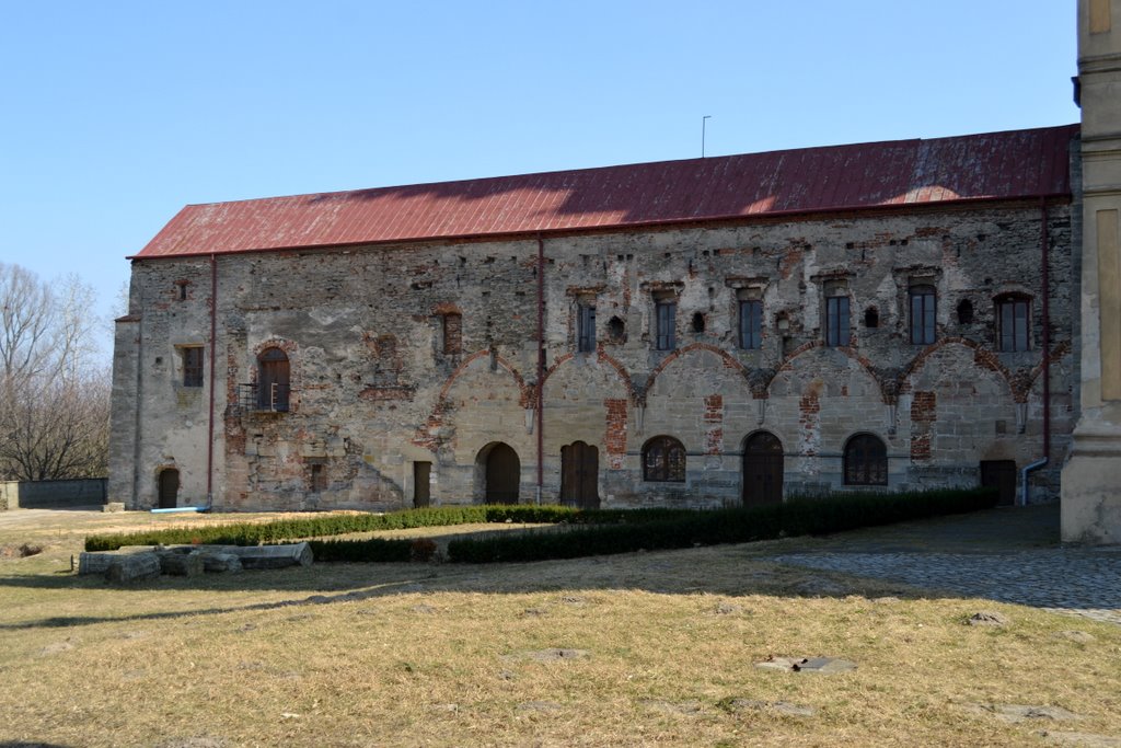 W latach 1527 – 32 opat Aleksy rozebrał drewniany kościółek św. Leonarda i wybudował dom opacki. W końcu XVI w. zabudowania są mocno nadwyrężone. Do odbudowy przystępuje niezwykle lubiany opat Hieronim Ossoliński. Porządkuje sprawy gospodarcze, uposaża bibliotekę w nowe księgi, buduje nowy dwór opacki. Z kolei opat Zbigniew Ossoliński (od 1643 r.) odnowił kościół, wtedy powstał obecny ołtarz główny i kruchta, a na skrzyżowaniu naw potężna sygnaturka (1678 r. krakowski mistrz Michał Pfaf).
