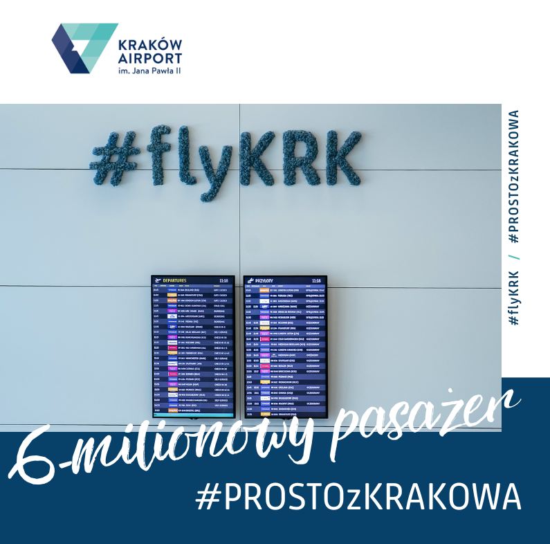 Na koniec wakacji dobra wiadomość. Dzisiaj w Kraków Airport symbolicznie powitaliśmy 6. milionowego pasażera. W historii krakowskiego lotniska to już czwarty raz, kiedy udało się osiągnąć taki wynik, ale jest on najszybciej osiągniętym od początku roku”- powiedział Radosław Włoszek prezes zarządu Kraków Airport.