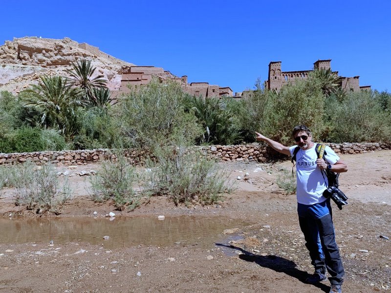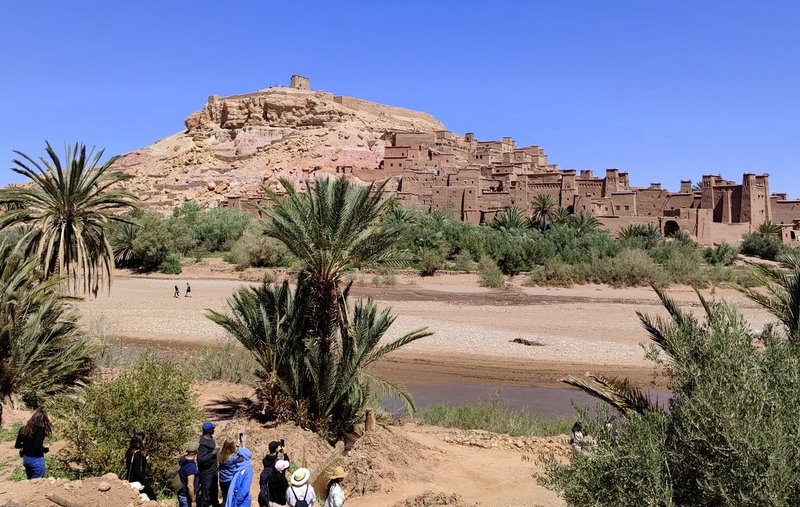 Parking znajduje się przy głównej drodze, skąd malowniczymi uliczkami docieramy do brzegu rzeki. Przejście na drugą stronę prowadzi przez most Ait Benhaddou, lub nieco z prawej strony przez samą rzekę. Koryto zazwyczaj wypełnia leniwie płynący strumyczek, który pokonujemy po kilku kamieniach. W okolicy mostu jest kolejny niesamowity obrazek. To praczki ze stosami kolorowych ubrań, piorące w wodzie i rozkładające wielobarwne puzzle nad brzegiem rzeki.