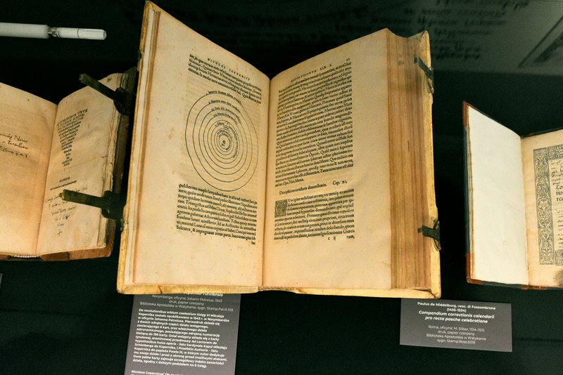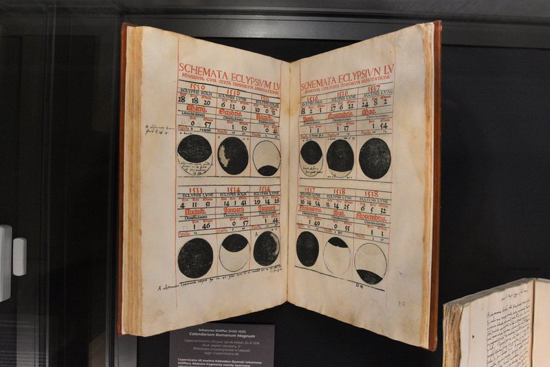 Absolutny rarytas na wystawie to księga, dzięki której w 2010 r. możliwy był ponowny pochówek szczątków Mikołaja Kopernika we Fromborku. Włos znaleziony w tej księdze miał kod DNA zgodny z DNA czaszki odkopanej pod jednym z bocznych ołtarzy katedry we Fromborku. Przechowywane od najazdu szwedzkiego w Uppsali działo pt. „Calendarium romanum magnum” Johannesa Stoefflera przez prawie ćwierć wieku było używane przez Kopernika.