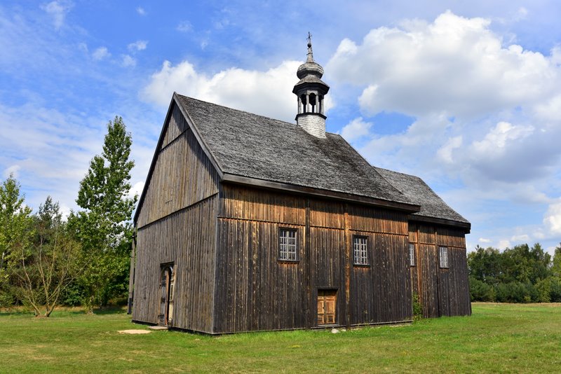 Na teren skansenu przeniesiony został zespół sakralny z Wysokienic złożony z drewnianej, jednonawowej świątyni datowanej na 1758 r. oraz dzwonnicy z 1774 r. Kościół pod wezwaniem św. Marcina, fundacji arcybiskupa gnieźnieńskiego Adama Komorowskiego, wzniesiony został w stylu barokowym. Posiada dach kryty gontem z wieżyczką z sygnaturką oraz zachowany oryginalny wystrój wnętrza złożony m.in. z ołtarzy, ambony i chrzcielnicy. Obok świątyni zlokalizowano budynek plebanii z Pszczonowa z przeł. XIX/XX w. Translokacja i renowacja obiektów była współfinansowana ze środków Ministerstwa Kultury i Dziedzictwa Narodowego.