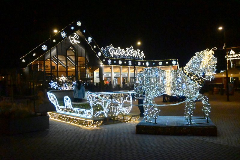 Start wizyty rozpoczyna się już przy dolnej stacji kolejki, gdzie czekają motywy świąteczne, takie jak sanie Świętego Mikołaja czy wspinający się taternicy na fasady budynków. Dalej — trasa prowadzi przez labirynt świateł do centralnej strefy, a cały efekt podkreśla nastrojowa muzyka i klimat zimowego spektaklu świetlnego. Według PKL, instalacje są codziennie dostępne od godziny 16:00, a ekspozycję można podziwiać do wieczora.