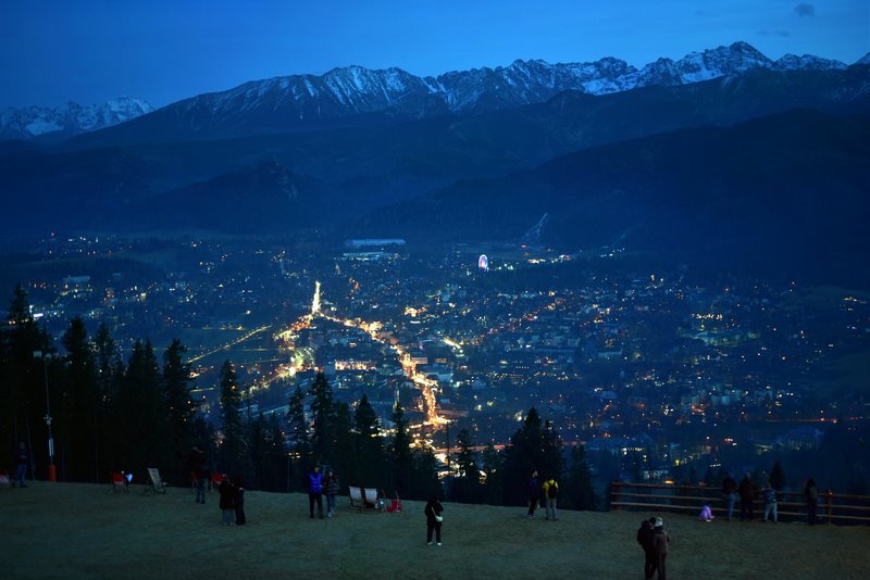 Czas wizyty: wieczorne wejście/wjazd daje najlepsze widoki iluminacji i świateł Zakopanego; dzień pozwala lepiej podziwiać panoramę Tatr.