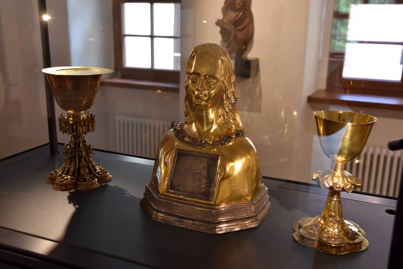 Ważną częścią kolekcji są dzieła złotnictwa liturgicznego – kielichy, monstrancje, relikwiarze i pateny, wykonane z niezwykłym kunsztem przez mistrzów złotniczych od średniowiecza po wiek XIX. Te drogocenne naczynia liturgiczne nie tylko zachwycają formą i bogactwem zdobień, ale także ukazują splendor i głęboką symbolikę liturgii katolickiej.
