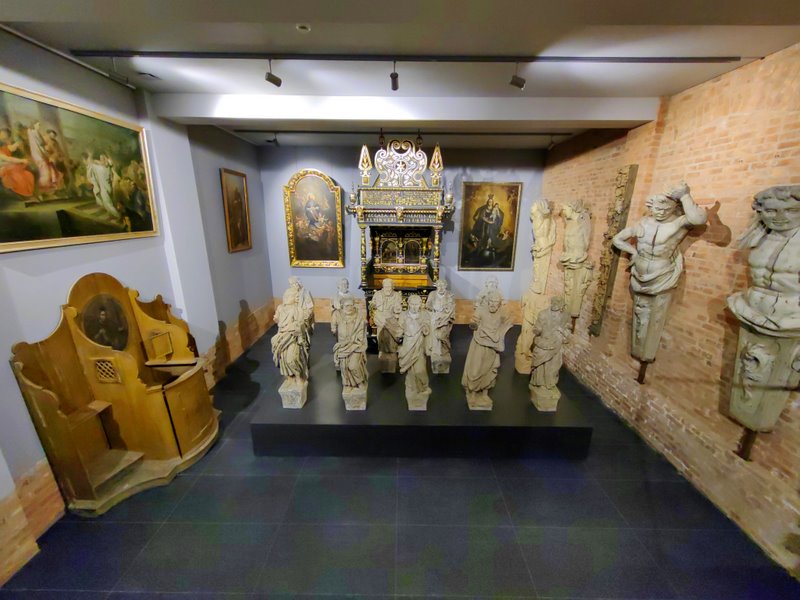 Muzeum zlokalizowane jest w połączonych kamienicach, na szlaku prowadzącym z rynku do Bazyliki Katedralnej. Wchodząc do środka spodziewałam się maleńkiej wystawy, nie wiedząc że oprócz kamienicy do której się wchodzi, muzeum obejmuje także dwie sąsiednie a całość jest pełna skarbów. W obiekcie znajdują się sale wystawowe, magazyny, pracownia konserwatorska i kawiarnia. Na ok. 1,3 tys. m2 prezentowanych jest ok. pół tysiąca eksponatów, m.in. pochodzący z XVII wieku relikwiarz św. Andrzeja Apostoła oraz oryginalne dzieło Ignacego Krasickiego – „Monachomachia*, czyli Wojna mnichów”.