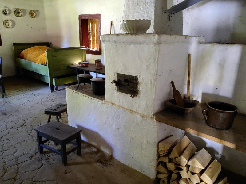 wyposażenie techniczne do domowej produkcji sukna – valcha z Livovo (które służyło do przerabiania tkaniny wełnianej na grube sukno), część z 1888 i część z 1948