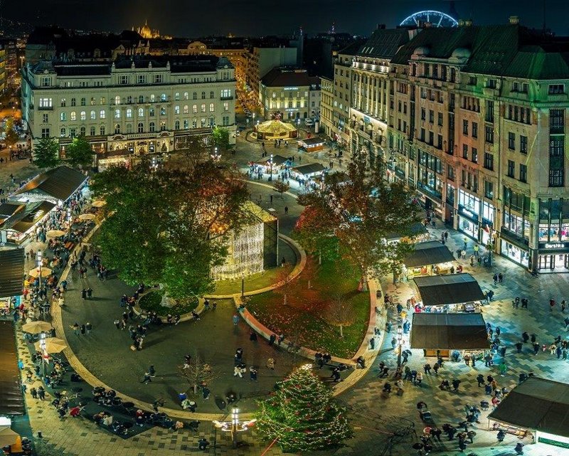 Zaledwie dziesięć minut spacerem od Bazyliki Świętego Stefana znajduje się Jarmark Bożonarodzeniowy na Placu Vörösmarty, które jest kolejnym miejscem, wartym odwiedzenia. Ma miejsce w dniach od 17 listopada do 31 grudnia 2024 roku. Oferuje różnorodne węgierskie produkty rzemieślnicze, świąteczne przysmaki oraz występy na żywo. Czasopismo Time Out uznało je za jedno z najpiękniejszych targów bożonarodzeniowych w Europie, co czyni Plac Vörösmarty idealnym miejscem na przytulny, świąteczny spacer.