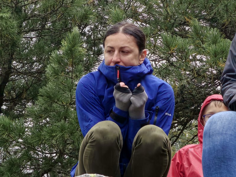 Rodzina i przyjaciele którzy dotarli na tę uroczystość, nie zważając na pogodę.