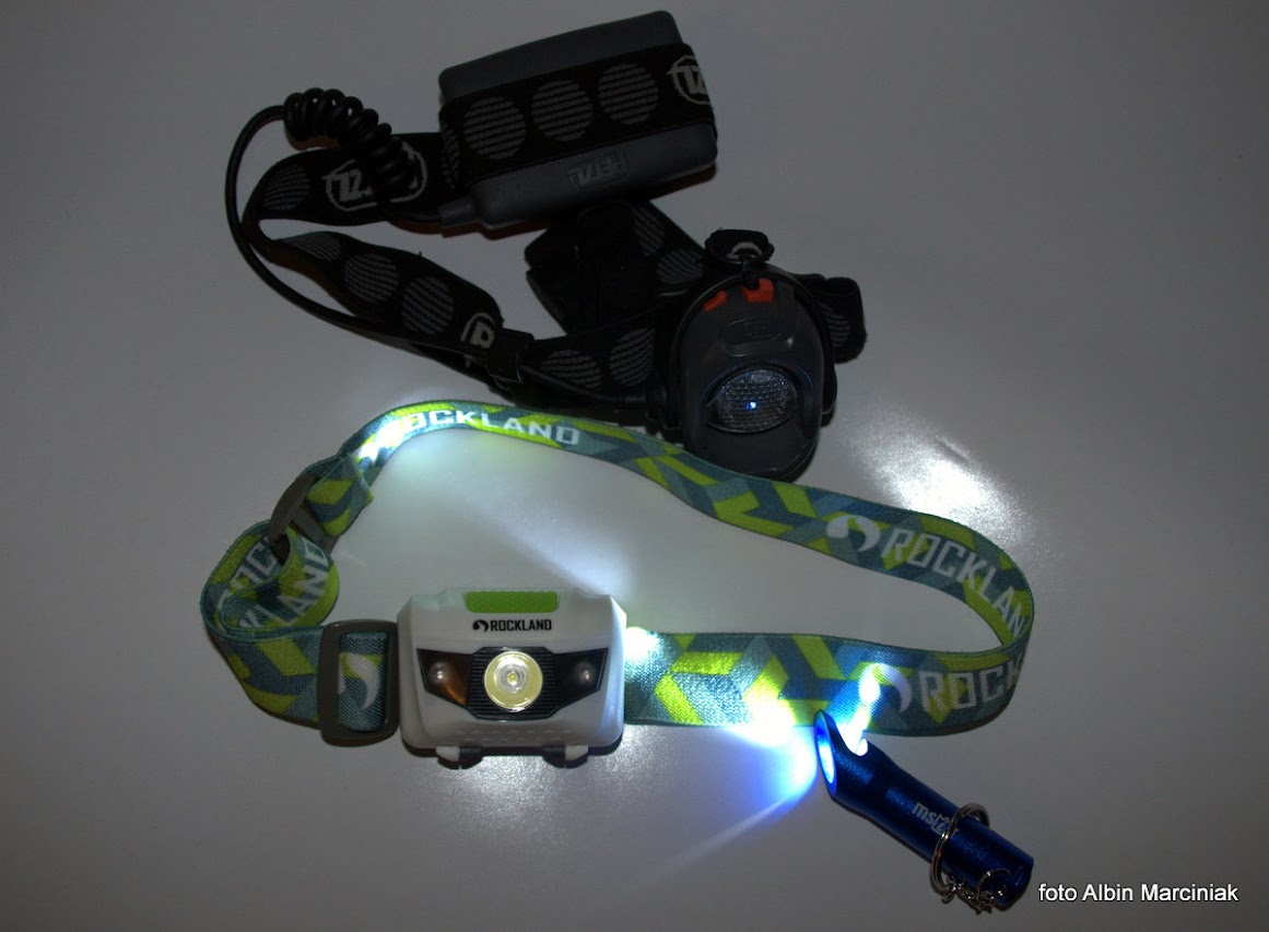 Okres jesienno zimowy to krótkie dni. Jednak bez względu na porę roku, w plecaku nierozłącznym elementem powinna być czołówka. Latarka, jaka by ona nie była, nie sprawdzi się tak jak czołówka. Światło zawsze podąża za naszym ruchem głowy a ręce nie są niczym ograniczone. Rozważania na temat czołówek to w zasadzie osobny temat, bo każdy ma swoje upodobania i potrzeby. Zawartość portfela także ma niemałe znaczenie. Prostą czołówkę o niezbyt dużej mocy, np. Rockland ze stopniowaniem siły światła 52 lumenów oraz światłem czerwonym sygnalizacyjnym, kupimy już za kilkadziesiąt zł. Natomiast czołówki o dużej mocy to wydatek powyżej 250 zł.