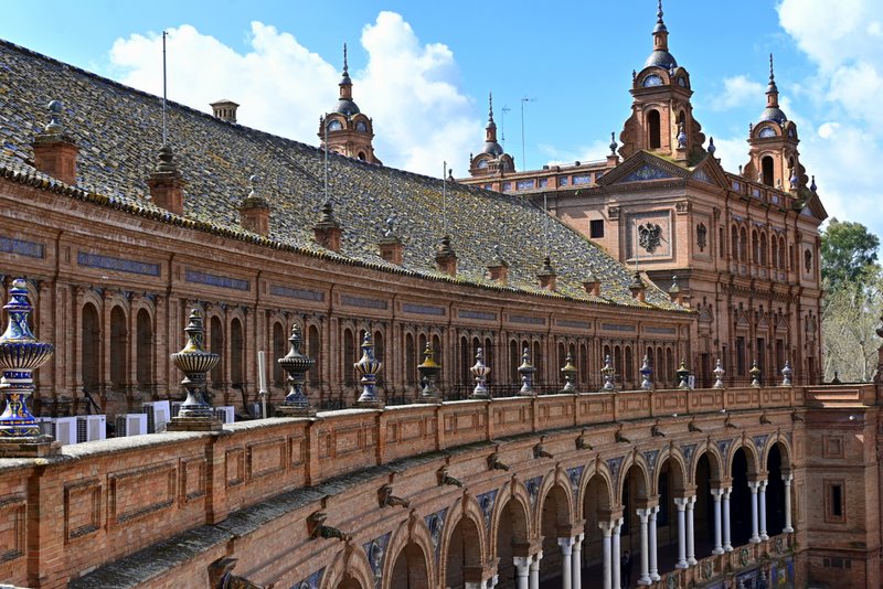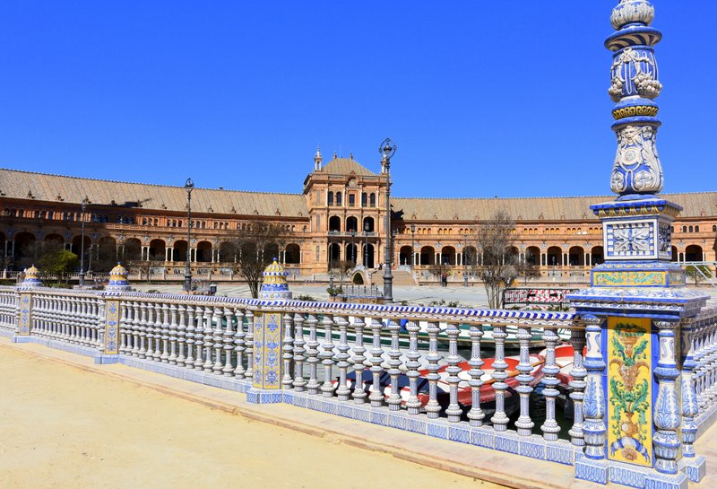 ? Warto wiedzieć: Plaza de España pojawiła się m.in. w filmie „Gwiezdne Wojny: Atak klonów”. Główny plac w Sewilli, był pałacem królowej Amidali, położonym w mieście Theed na planecie Naboo w drugiej odsłonie trylogii „Gwiezdnych Wojen” (wyjście z terminala kosmoportu). Ten słynny plac był także miejscem dla tak znanych starszych filmów, jak „Lawrence z Arabii”.