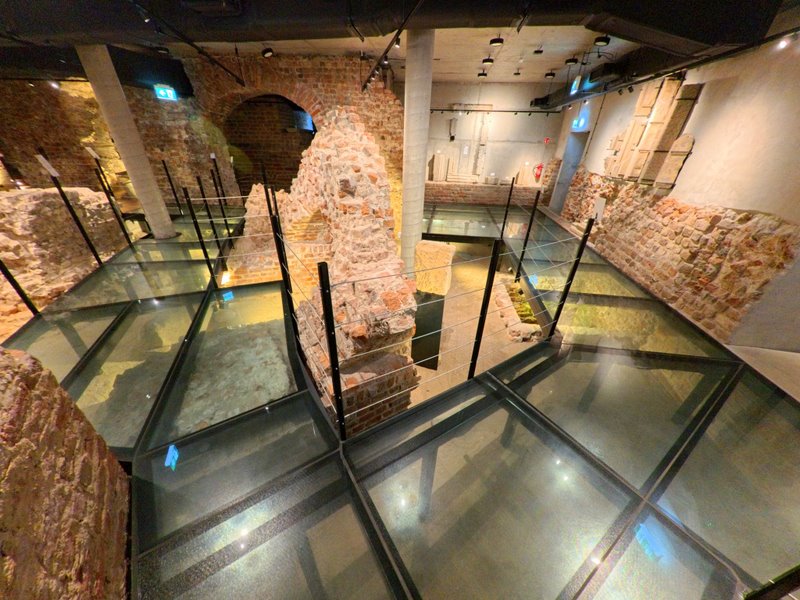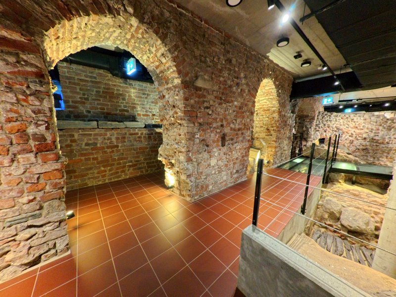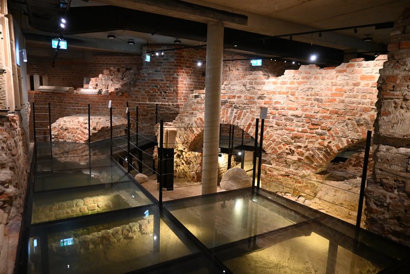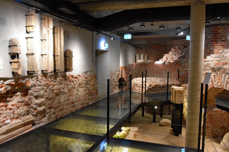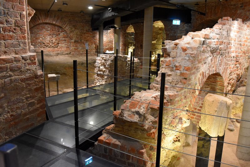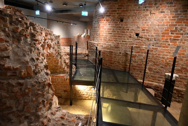 Schodzi się po cichu. Wejście przez Dom Notre Dame przy ul. św. Marcina 12 prowadzi w dół, do przyziemia i piwnic, gdzie przebłyski światła padają na chropowaty mur. Przewodnik zatrzymuje się przy zarysie 18-bocznego oktogonu – unikatowej wieży/donżonu, której średnica przekraczała 24 metry. Obok plansze i makiety układają w całość rozrastającą się przez stulecia siedzibę książęcą; w gablotach – detale kamieniarskie i ceramika wydobyta na miejscu. W jednej z komór – elementy średniowiecznego hipokaustum, systemu ogrzewania ciepłym powietrzem, który sprawiał, że książęca rezydencja była nie tylko bezpieczna, ale i komfortowa. „Technologia” sprzed ośmiu wieków pachnie tu świeżą zaprawą konserwatorską.