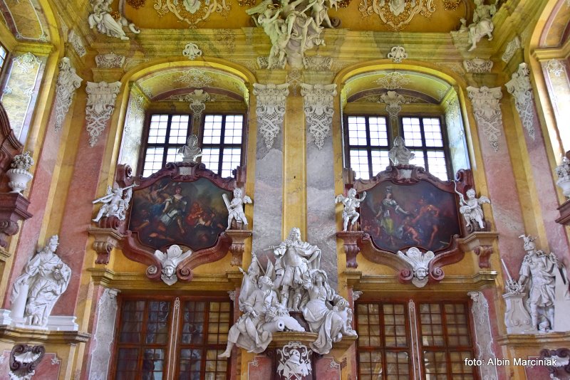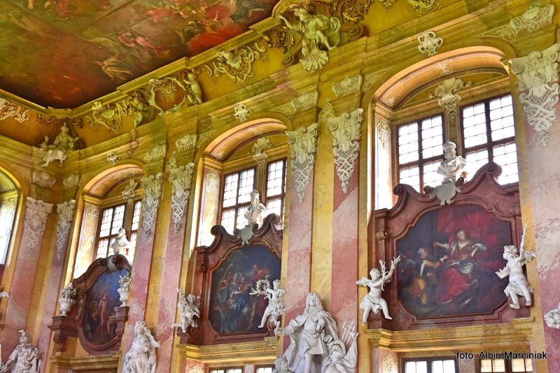 Nowy pałac opata, kościół i klasztor tworzą ogromny kompleks należący do największych tego typu w Europie środkowej. Wnętrza wypełniają wspaniałe sale: sala książęca, biblioteka, jadalnia opata, refektarz i ponad 300 innych pięknych pomieszczeń zdobionych znakomitymi płótnami wielkiego malarza śląskiego Michała Willmanna, Mateusza Steinla.malowidłami Krystiana Bentuma i Feliksa Schefflera, rzeźbami Franciszka Mangoldta.