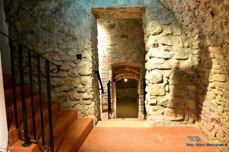 Dwukondygnacyjne podziemia budynku o powierzchni blisko 400 m kw. sięgają do poziomu około 10 metrów poniżej poziomu terenu. Dawni właściciele, w tym także kupcy, przechowywali w piwnicach o zróżnicowanej wielkości i różnych poziomach głębokości swoje dobra i towary. Wśród nich można wymienić: wina, miody pitne i lokalne bogactwo Ziemi Przemyskiej, czyli cenną w całej Europie sól. Przechowywano tam również m.in.: solone mięso, wędliny, słoninę, ziemiopłody i nabiał. Kupcy prowadzili tam także bezpośredni handel z przybyłymi do Przemyśla kontrahentami oraz z mieszkańcami miasta i okolic. Podziemia służyły nie tylko jako magazyny towarów i miejsce handlu, ale także jako szynki i warsztaty rzemieślnicze, a nawet w razie potrzeby wykorzystywano je na czasowe mieszkania dla służby.