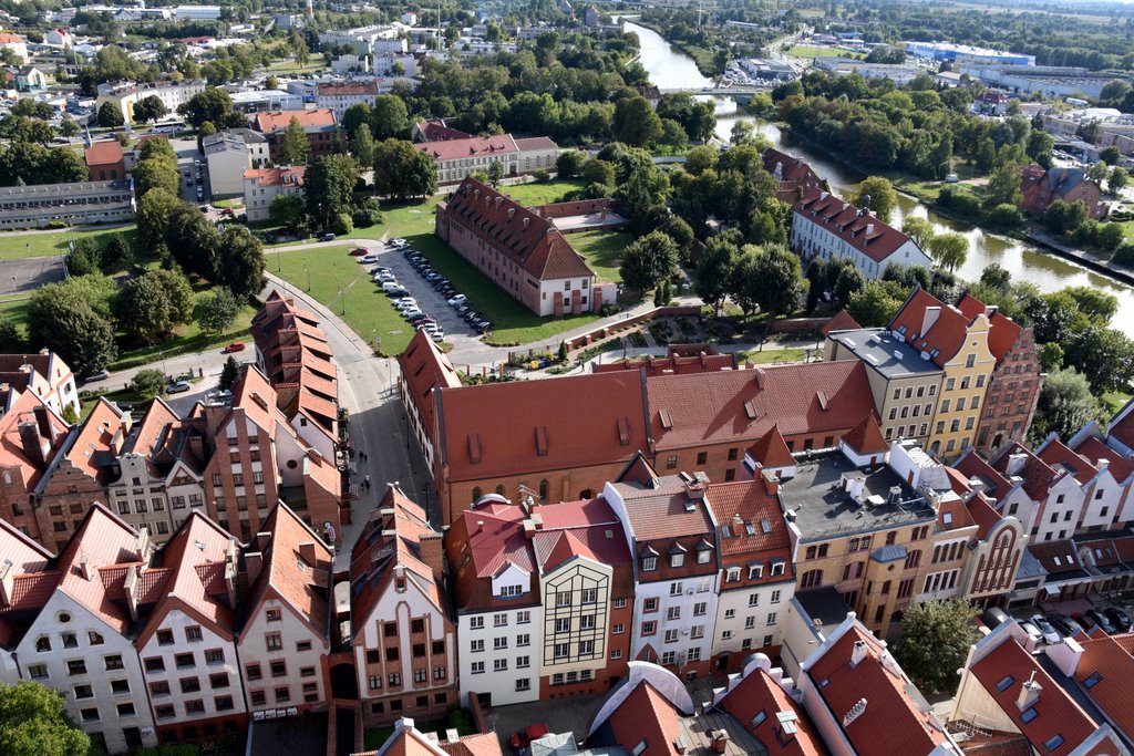 Panorama Elbląga. Widok z tarasu na wieży katedry św. Mikołaja.