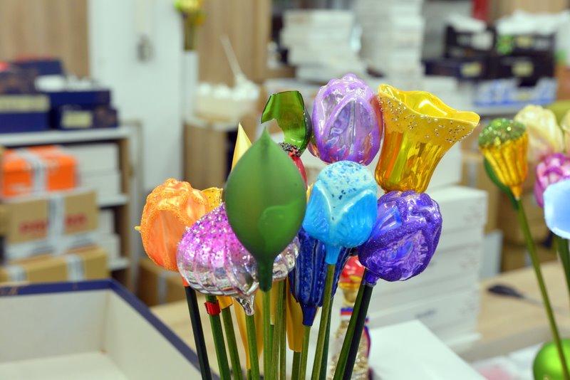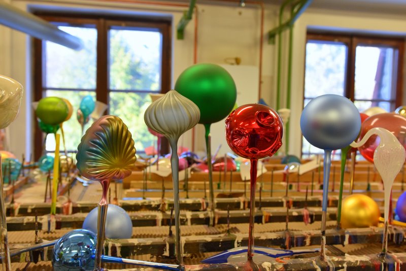 Zwiedzający mogą przyjrzeć się procesowi produkcji – dmuchaniu ze szklanych rurek, posrebrzaniu, zabarwianiu oraz cięciu odstających części roboczych a następnie montażowi wieszaków. Każda bombka, zanim trafi na dział ozdabiania, musi przejść przez przynajmniej sześć par rąk. Na zwiedzających czekają także warsztaty i sklep oferujący setki kolorowych, błyszczących cudeniek. Tutaj bywa najtrudniej. Ilość kolorowych ozdób działa na wyobraźnię i chęć przyozdobienia niejednej choinki.