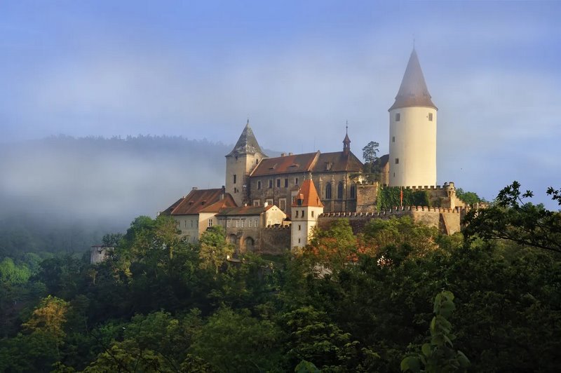 Křivoklát – jeden z najstarszych i najsłynniejszych czeskich zamków. Pierwsze pisemne wzmianki o stojącym w tym miejscu drewnianym zamku myśliwskim pochodzą z roku 1109-1110 z Kroniki Kosmasa. Za panowania Przemysła Ottokara II został przebudowany w rozległą kamienną budowlę. Późnogotycki kształt otrzymał za panowania Władysława II Jagiellończyka na przełomie XV i XVI wieku.
