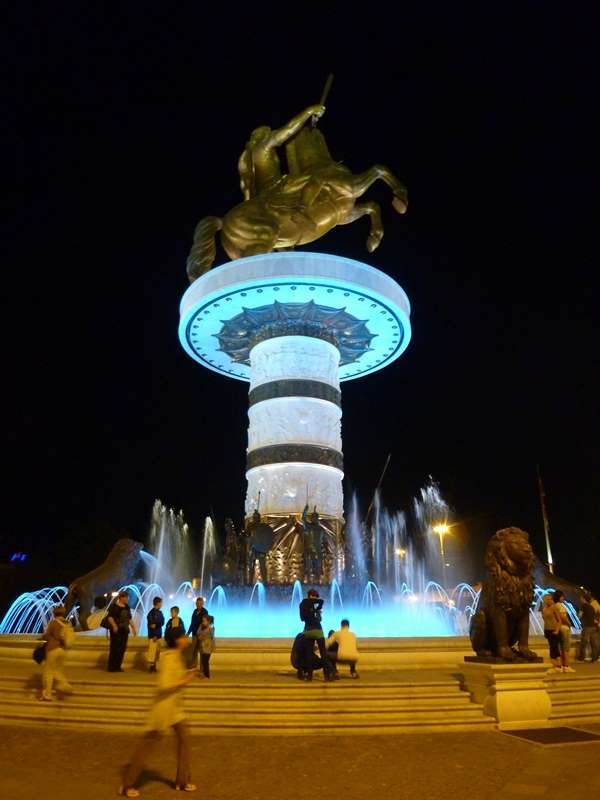 Wieczorem meldujemy się w przyjemnym hostelu (7euro/os) w Skopje i zwiedzamy miasto po zmroku. Stolica Macedonii urzeka nas kontrastami – kiczowatym, olbrzymim, tandetnie podświetlonym pomnikiem Aleksandra Wielkiego i spokojną, uroczą starą dzielnicą handlową Czarszija, w której czas zdaje się płynąć wolniej.