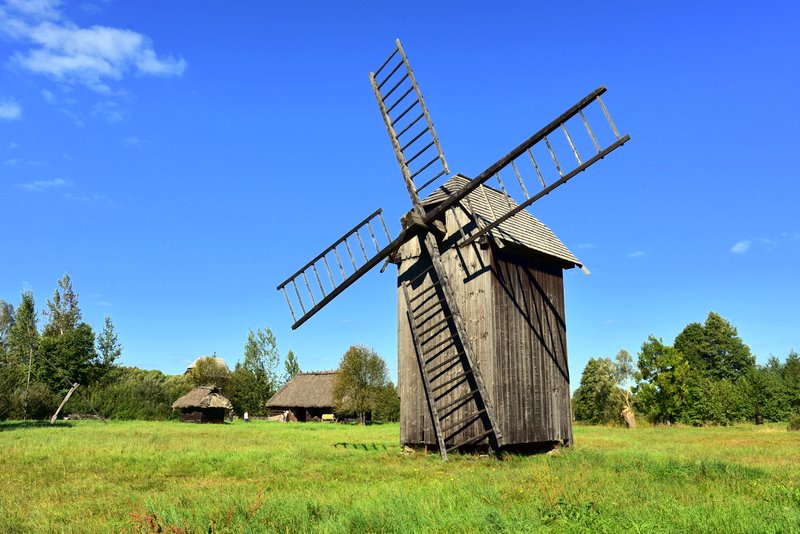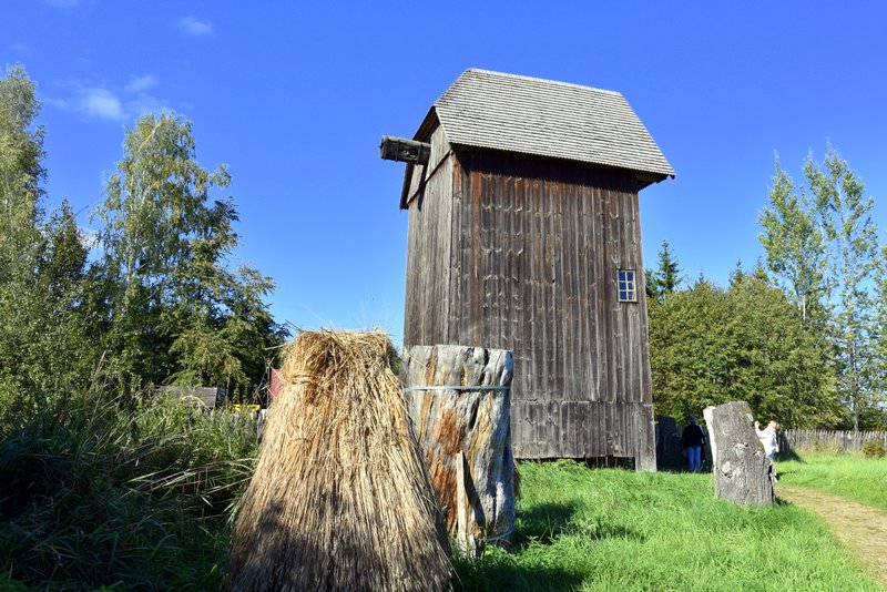 Wiatrak koźlak kryty gontem – pochodzi z lat 30. XX wieku. Niegdyś stał w Orli, przewieziony do Białowieży został w 1985. Wewnątrz można oglądać kompletny mechanizm służący do mielenia zboża, który po remoncie przewidywany jest do uruchomienia.