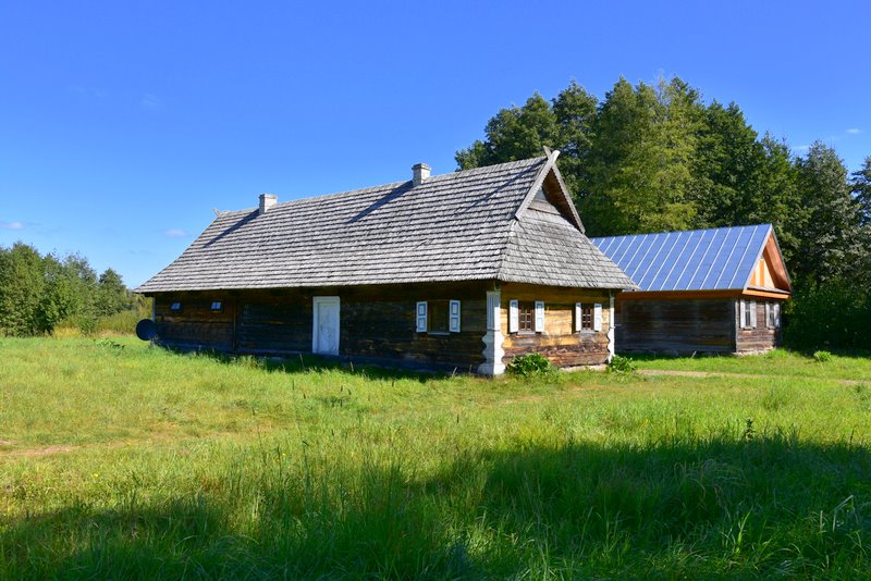 Chata ze wsi Klejniki – pochodzi z roku 1893, rok rekonstrukcji – 1988. Kryta gontem, w części mieszkalnej w pierwotnym kształcie zachowane są trzy pomieszczenia: „chata”, sień i komora. W centralnej izbie odtworzono piec oparty na drewnianym zrębie. Na głównej ścianie zachowała się w formie napisu w języku staro – cerkiewno – słowiańskim data wyświęcenia: 17 lipca 1895 roku.