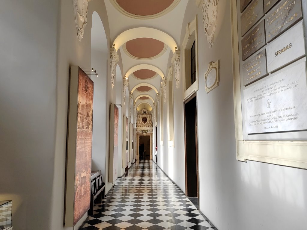 Na parterze, tuż przy wejściu znajduje się kasa a bilety możemy zakupić na całość bądź na poszczególne części muzeum. Wizytę warto ująć w swoich planach zwiedzania Wrocławia na nieco dłuższy pobyt, bo wnętrza jak i same eksponaty mocno wciągają a czas dziwnie szybko mija. Zwiedzanie warto zacząć od Oratorium Marianum. Aula znajduje się także na parterze na prawo od wejścia.