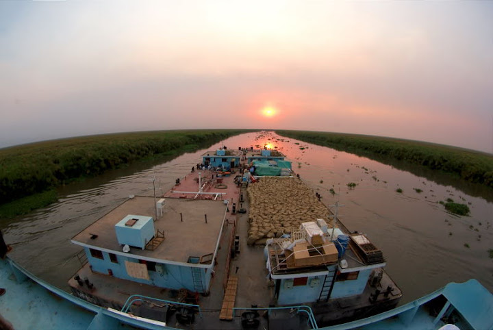 Stalowy pokład nie pozwala na wygodny sen. Coś nie gra, bo nie słychać dźwięku silników. Krzyżujemy wzrok. Kto bardziej się boi? Nastoletni żołnierz z przewieszonym karabinem, dla którego talata haładzia kompletnie nie pasują do znanego obrazu towarowej barki czy My, którzy zrozumieli, że wpływają na obszar Sudanu Południowego, gdzie ze wspomnieniami wojny dalej się nie oswojono.