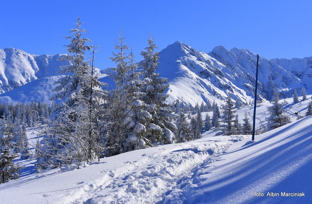 Jak dotrzeć do jednej z najpiękniejszych dolin w Tatrach, bez dużego wysiłku, bez trudności technicznych a przy dobrej pogodzie całkiem bezpiecznie? Nie jest to droga do Morskiego Oka czy droga w dolinie Kościeliskiej czy Chochołowskiej. To piękny widokowo szlak do Doliny Gąsienicowej. Szlak który pokonamy w podobnym czasie jak te wcześniej wymienione, lecz widoki są wyjątkowe. Wyruszamy z doliny po wyjściu z busa a niewiele później podziwiamy piękną panoramę na Zakopane, Nowy Targ i dużą część Małopolski. Przy sprzyjającej pogodzie możemy oglądać nie tylko Tatry ale także Babią Górę, Turbacz a nawet Trzy Korony w Pieninach. Chwilę później stajemy oko w oko z majestatyczną granią Orlej Perci. Panorama jest imponująca bo przed nami od lewej jest Wielka Koszysta, Żółta Turnia i Kościelec a za nimi grań Orlej Perci. Dalej w prawo Świnica, Liliowe i zbocza Kasprowego Wierchu. W dole natomiast krzyżuje się wiele szlaków prowadzących na te szczyty oraz do kolejnych dolin. Zachwycać się tutaj można o każdej porze roku, lecz właśnie w zimie jest tutaj wyjątkowo i nieco spokojniej niż w lecie.