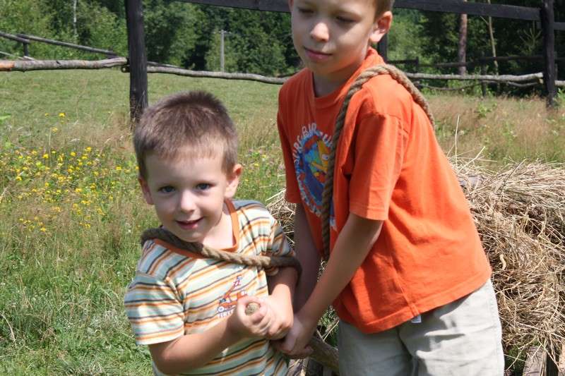 Dzieci zajmowały się robieniem powróseł. Aby je zrobić trzeba było w bezpiecznej odległości za kosiarzem wyciągnąć garść najdłuższych źdźbeł i obrać je z traw i chwastów.
