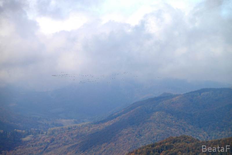 Nad Bieszczadami zbierały się stada żurawi gotowych do odlotu