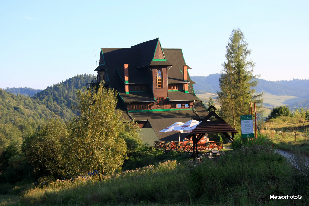 Sobotni poranek przywitał nas jeszcze lekkim zachmurzeniem. „Schronisko Trzy Korony” które nas ugościło: