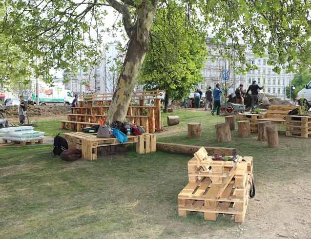 Zaplanowano tu uprawę około 50 rodzajów drzew i krzewów owocowych, warzyw, a nawet zbóż. A do tego teren wyposażono w meble ogrodowe stworzone z palet i zrobiło się naprawdę bardzo przyjemnie. Wprawdzie to nie Park Schönbrunn, ale jest tu swojsko i ekologicznie.
