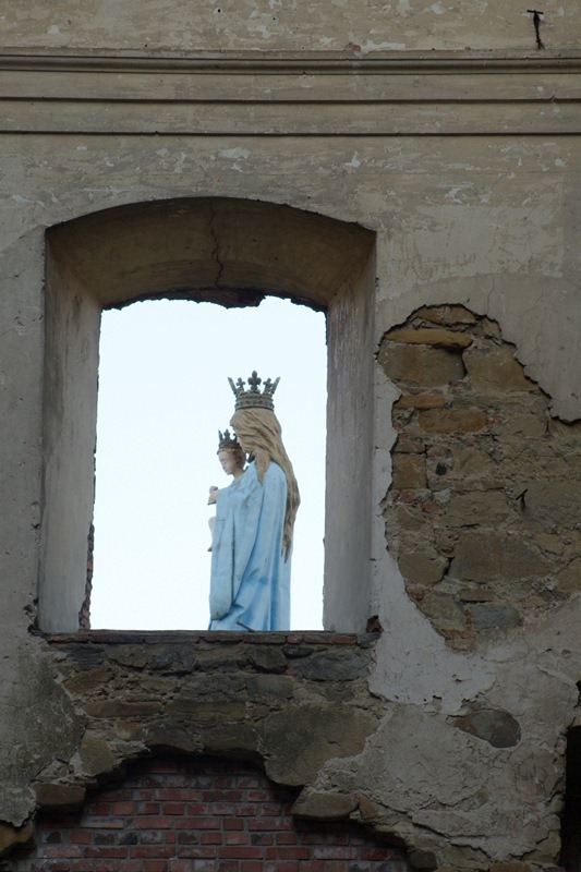 [b]Wnętrze ruin, widok przez „okno” na figurę Maryi stojącej przed nimi.