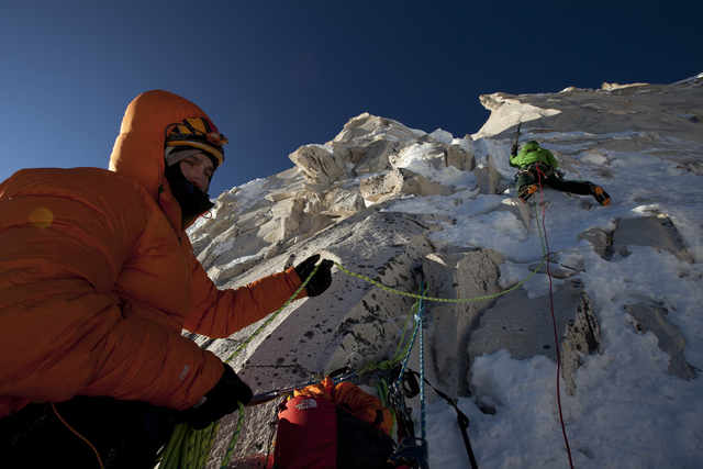 .Zestaw Meru został zaprojektowany i wyprodukowany przy udziale sportowców współpracujących z firmą The North Face®: Conradem Ankerem, Jimmym Chinem i Renanem Ozturkiem. W 2008 roku podjęli oni próbę zdobycia mierzącego ponad 6310 m n.p.m. szczytu Meru drogą Shark’s Fin. Zespół spędził 19 wyczerpujących dni w ścianie i napotkał jedne z najtrudniejszych na Ziemi warunków wspinaczki wysokogórskiej – ekspedycja została zmuszona do odwrotu 100 metrów od szczytu. Na podstawie informacji od wspinaczy i doświadczenia z wyprawy, każdy element zestawu Meru Kit został zaprojektowany tak by ułatwić kolejną próbę pokonania tej wyjątkowej drogi. W niedzielę 2 października 2011 roku Conrad Anker, Jimmy Chin i Renan Ozturk dotarli na szczyt północno – wschodniej ściany Meru.