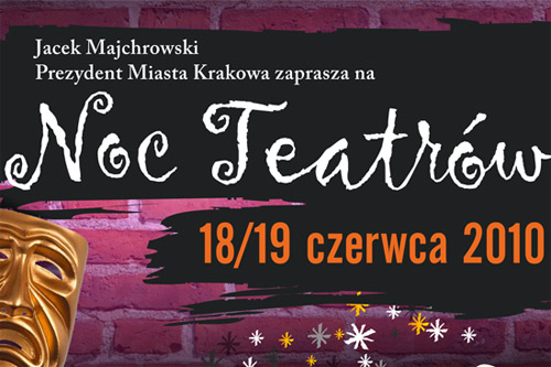 Organizatorami Krakowskiej Nocy Teatrów są: Urząd Miasta Krakowa oraz Teatr KTO. Szczegółowy program znajduje się w linku poniżej. Patronat medialny nad tegoroczną edycją imprezy objęły: Gazeta Wyborcza, TVP Kraków, Radio Kraków, Karnet, portale Kulturatka i Magiczny Kraków oraz Dwutygodnik Miejski KRAKÓW.PL. (KF).