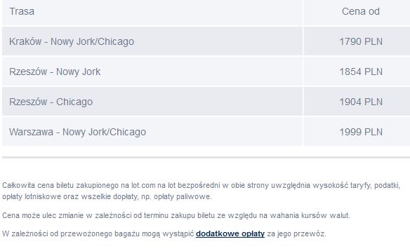• Warszawa – Chicago od 1999 PLN