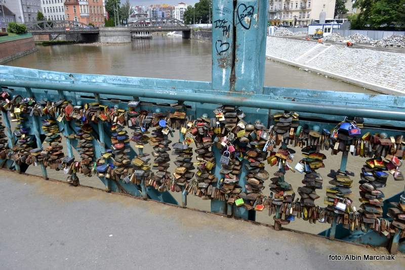 Coraz więcej miast ma „mosty zakochanych”. Tak jest także we Wrocławiu. Tutaj problemem jest znalezienie miejsca na założenie kolejnej kłódki a biznes kręci się cały czas. Ciężar wszystkich założonych jest już imponujący.